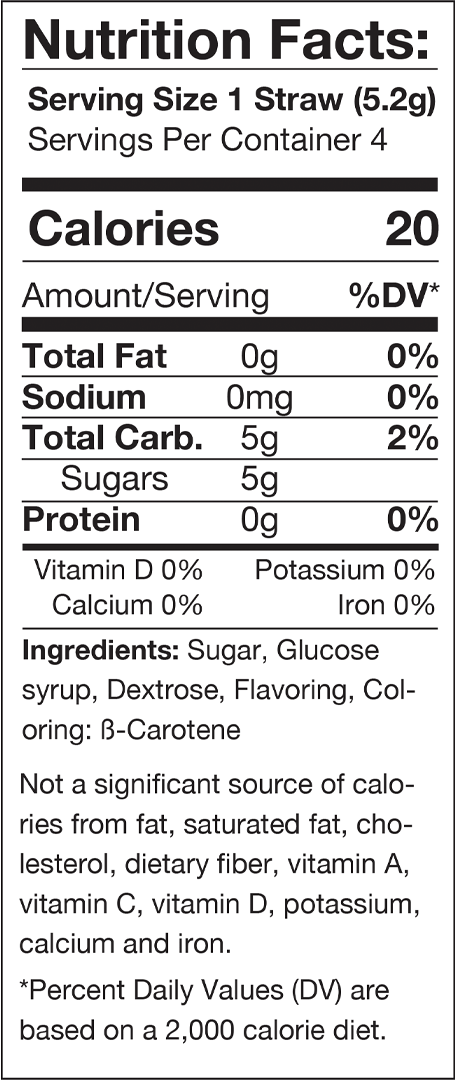 Sugar, Dextrose, Glucose Syrup, Natural Flavoring, Coloring (Beta-Carotene)